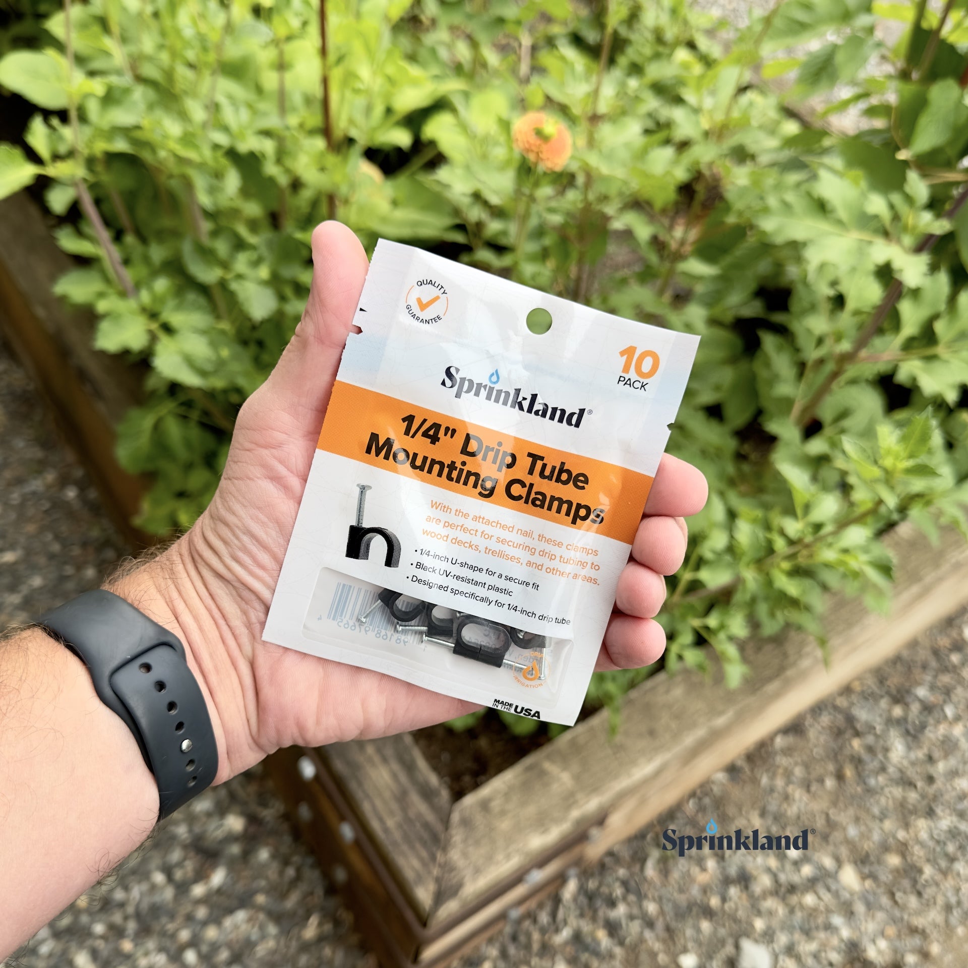 With the attached nail, These clamps are perfect for securing drip tubing to wood decks, trellises and other areas.